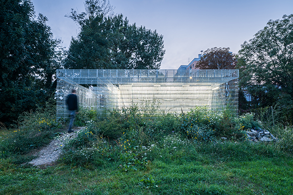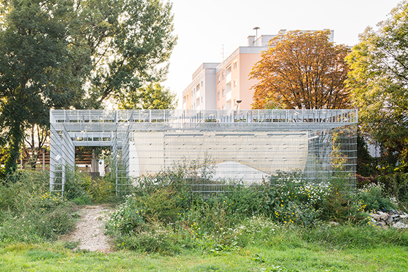 The collective AKT was invited to Club Hybrid, an open demonstrative building that will be a place of experiments and discourse in Graz. AKT brings a courtyard from Vienna to Graz and left as a gift of hospitality. The Gasthof establishes a gateway and a place that complements the Club Hybrid by its opposite. The courtyard is a space of tranquility. The representation of the demonstrative Club Hybrid consumes soil, excavates earth. AKT uses this earth to make a hill in the courtyard. Those who want decide not to go directly to the club, turn in the passage and come to the courtyard. The mound in the courtyard is walked on: People trample it. The rain makes it melt. At the beginning you can see the club from the hill. Later, the first plants grow and the hill becomes flat. In the courtyard, the meeting establishes encounter, unintentionally unexpected.